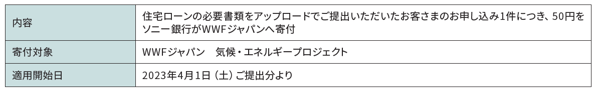 ソニー銀行株式会社(代表取締役社長:南 啓二/本社:東京都千代田区/以下 ソニー銀行)は、2023年4月1日(土)より、商品・サービスを通じたサステナビリティの取り組みとして、公益財団法人 世界自然保護基金ジャパン(以下 WWFジャパン)の気候・エネルギープロジェクトへの支援を開始しましたので、お知らせいたします。