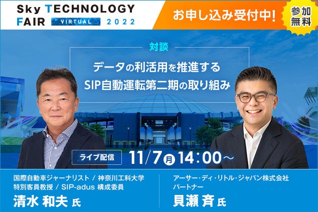 Sky株式会社では、2022年11月7日(月)より主催オンラインイベント「Sky Technology Fair Virtual 2022」を開催し、スペシャルウィーク企画「車載システム開発 ~新時代のモビリティサービスが紡ぐ未来」にて、専門家による対談をライブ配信いたします。