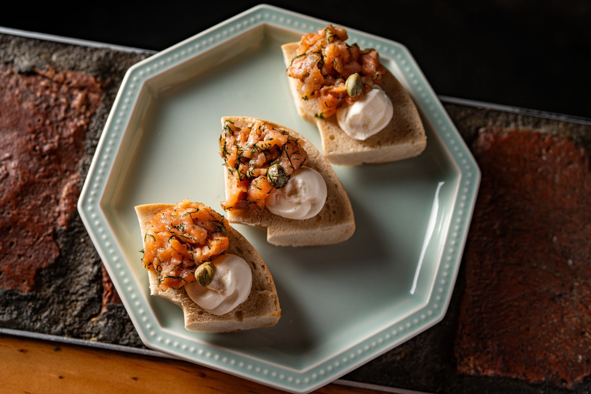 もっちりベーグルのブルスケッタ(北海道スモークサーモンとクリームチーズ) /550円