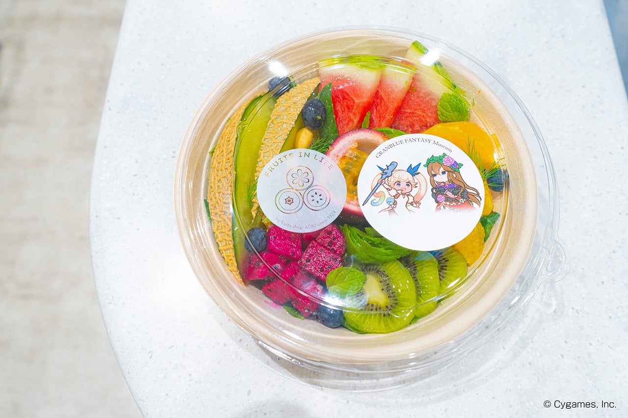 フルーツデトックスをコンセプトに独自の健康メソッドに基づいて開発された、フルーツ食の最高峰ともいえる贅沢サラダボウル。「グラブルミュージアム 蒼の追想」開催期間限定で、ロゼッタ&イオの限定シール付きで提供します。