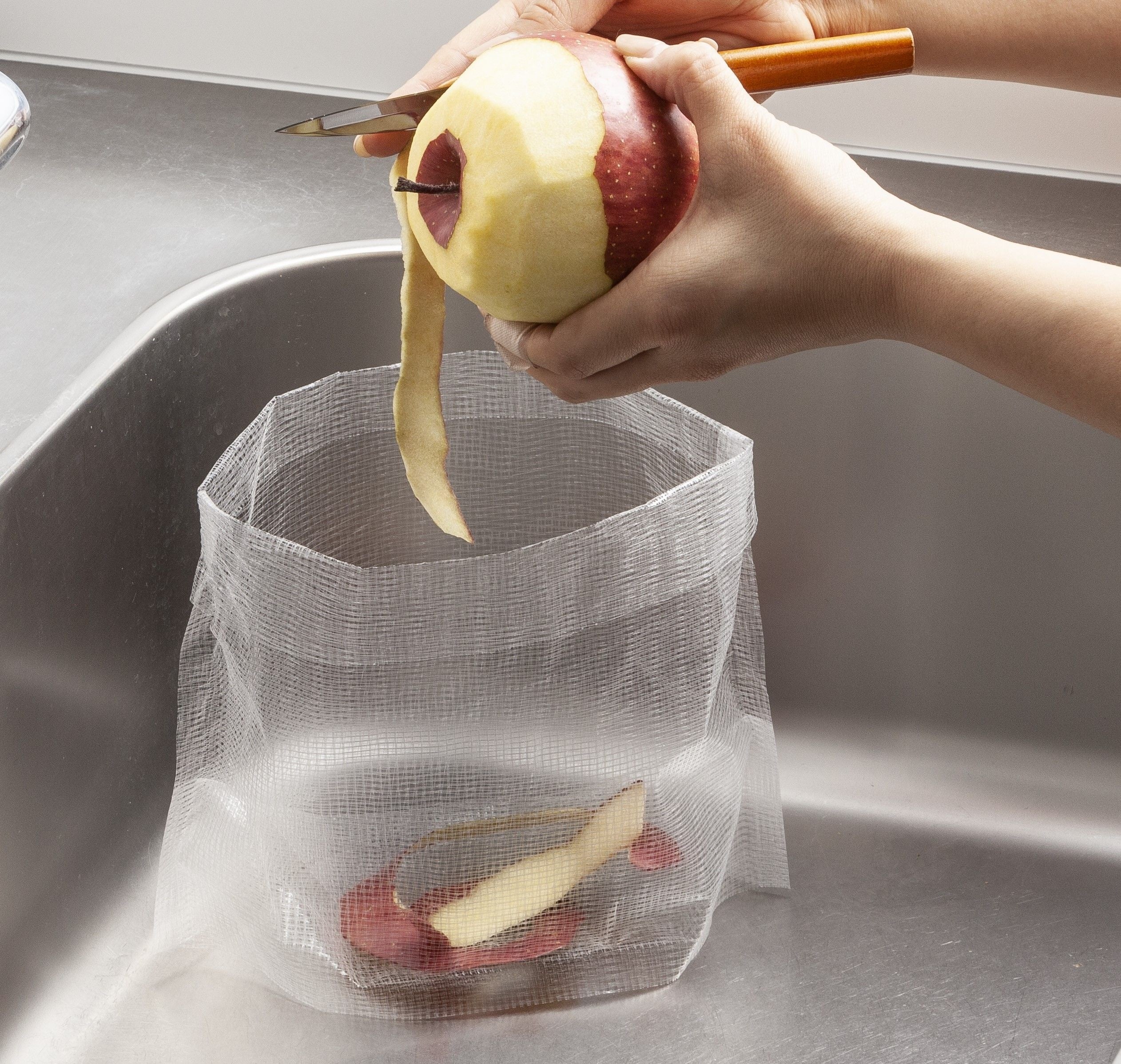 袋が自立しやすい、三角コーナーが不要な水切りです。細かいゴミも逃さず、水切れもスムーズです。