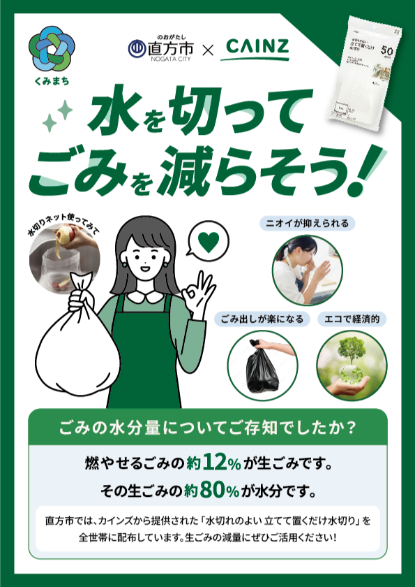 本取り組みは、2025年5月に直方市と締結した包括連携協定の「4R※1の推進」に基づくもので、家庭ごみの減量およびCO₂排出抑制にむけての取り組みです。今後、年内に市内全戸への配布を進めるとともに、市民を対象としたアンケート調査を通じて利用実態や効果を検証していきます。