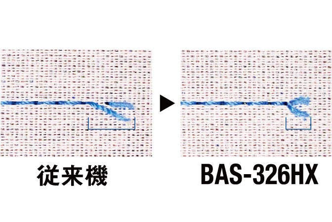 糸切り機構の見直しにより、縫製後の糸残り長さが短くなった。これにより縫製後の糸摘み作業を低減できる。