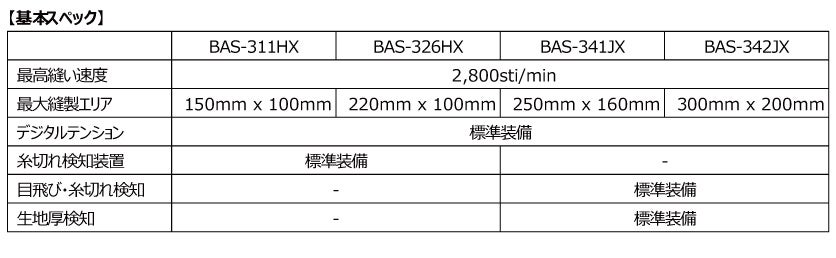 ブラザー工業株式会社(社長:佐々木一郎)は、高速縫製と高い縫製品質を実現した「ダイレクトドライブプログラム式電子ミシン NEXIO BAS-311HX/BAS-326HX (HXシリーズ)」と、ブラザー独自の目飛び*1・糸切れ検知機能を搭載した「ダイレクトドライブプログラム式電子ミシン NEXIO BAS-341JX/BAS-342JX (JXシリーズ)」を3月7日に発売する。