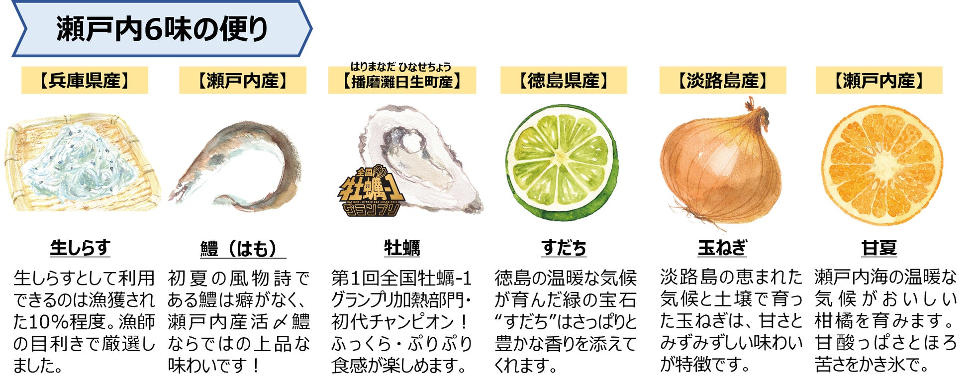 ①兵庫県産生しらす、瀬戸内産鱧(はも)・播磨灘日生町(はりまなだひなせちょう)産牡蠣など瀬戸内食材が集結!