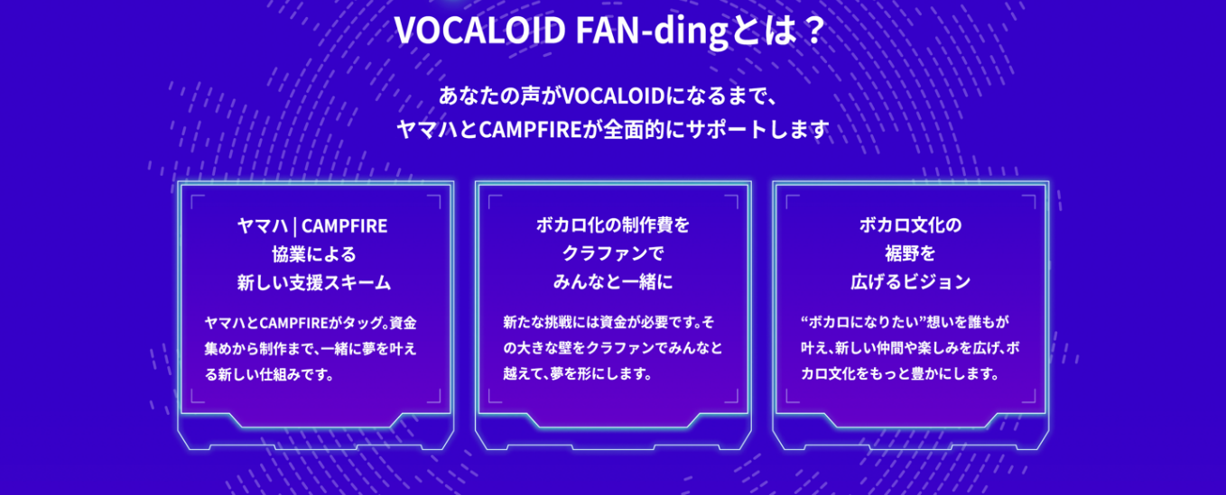 ヤマハとCAMPFIRE、ボカロに“なりたい”から“なれる”を支援するクラウドファンディングサービス「VOCALOID™ FAN-ding」を開始