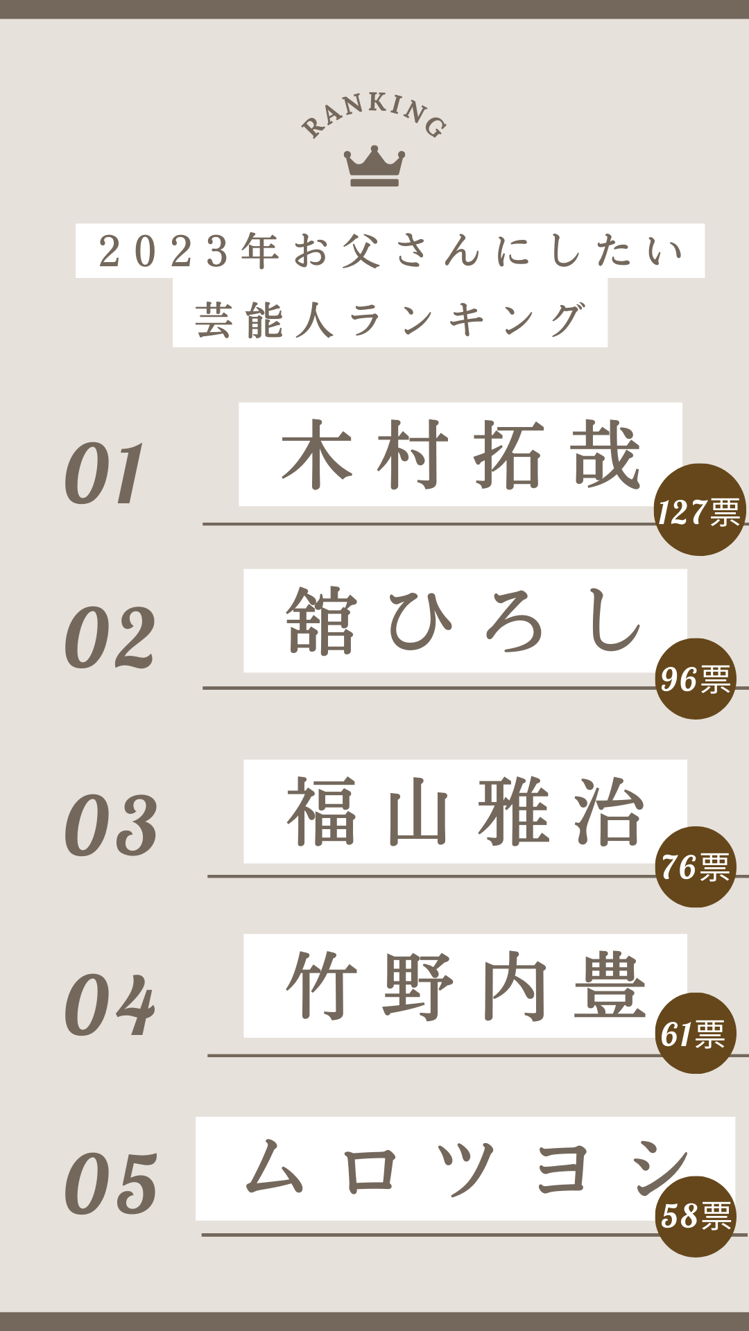 6月18日は「父の日」!2023年20~30代花嫁533名が選ぶ「お父さんにしたい」芸能人ランキングTOP5をご紹介!