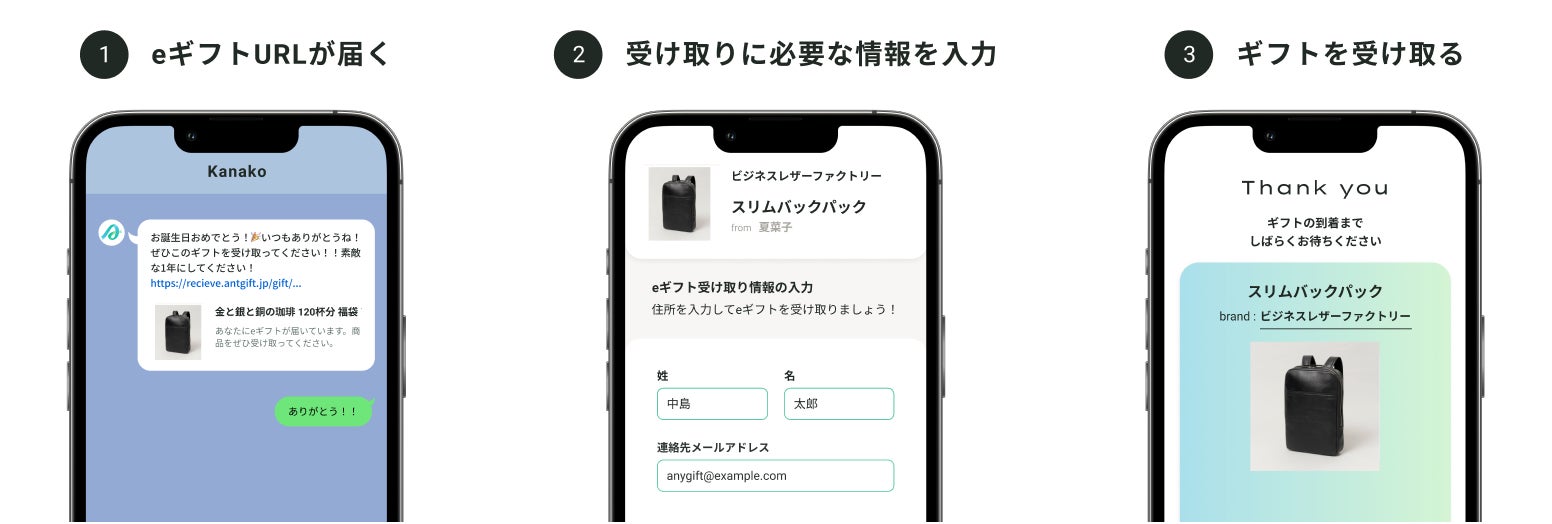 住所を知らない相手にもSNSやメールで手軽にビジネスレザーファクトリー商品を贈ることが可能に