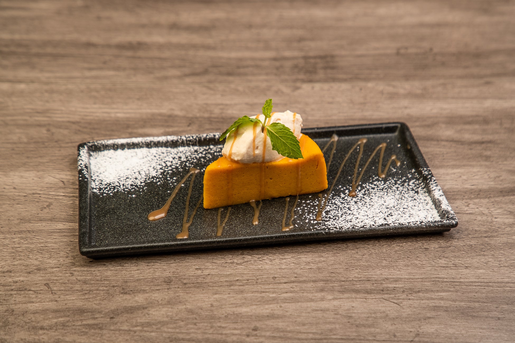 かぼちゃの濃厚さにリコッタチーズの軽さをプラス。仕上げの塩キャラメルソースが甘さに奥行きをあたえるチーズケーキ