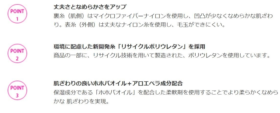 Point2 環境に配慮した新開発糸「リサイクルポリウレタン」を採用