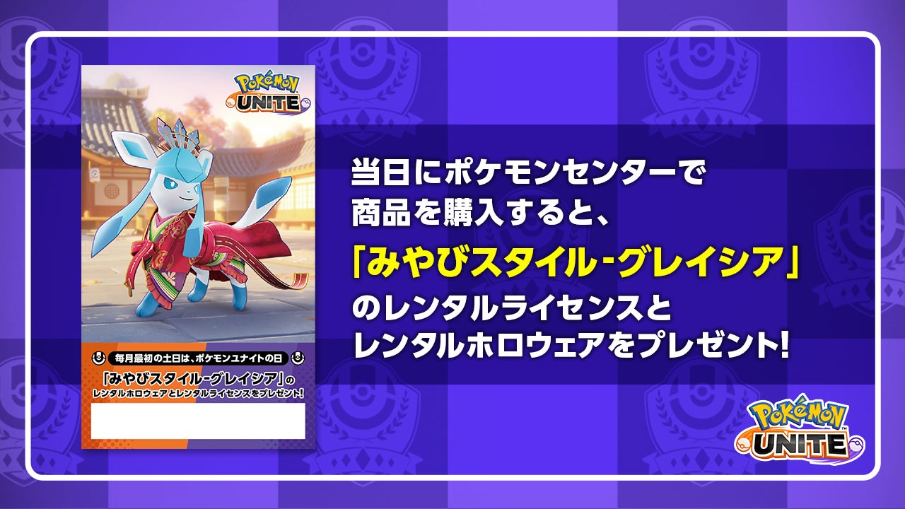1月6日(土)・7日(日)の「ポケモンユナイトの日」に全国のポケモンセンターでお買い物をすると、『ポケモンユナイト』でホロウェアを着たバトルが体験できるギフトコードをプレゼント。