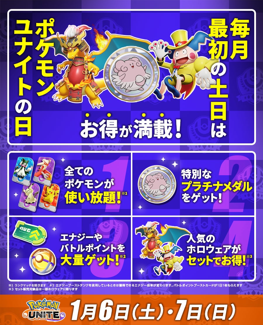 1月の「ポケモンユナイトの日」は、1月6日・7日に開催!