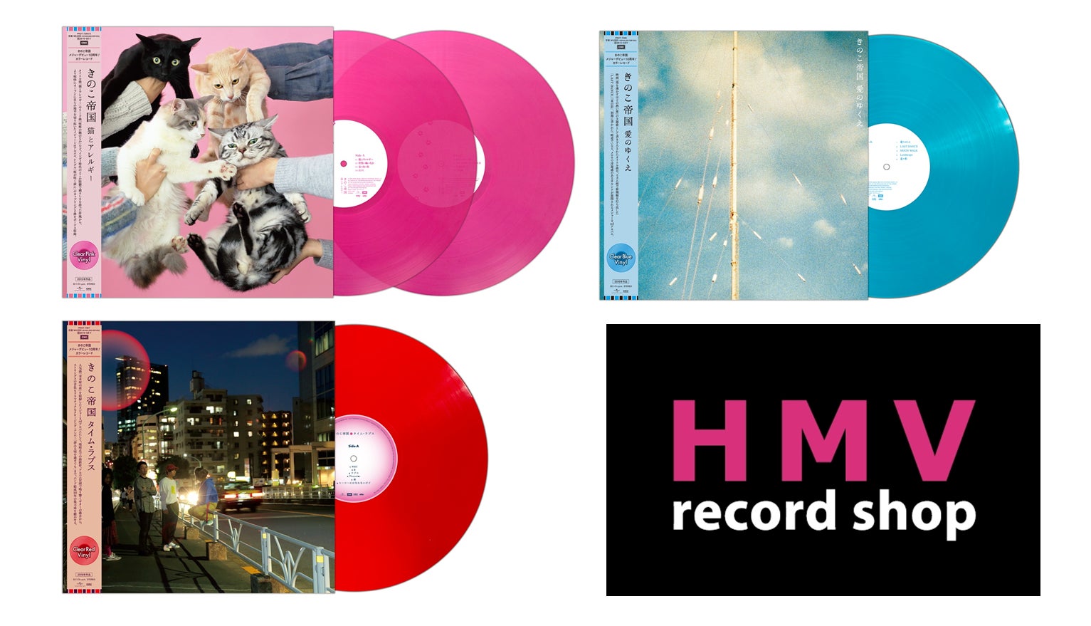 今回カラーレコードで再発売するのは、バンドがEMI Recordsからリリースした1stアルバム『猫とアレルギー』、2ndアルバム『愛のゆくえ』、3rdアルバム『タイム・ラプス』の3タイトルです。