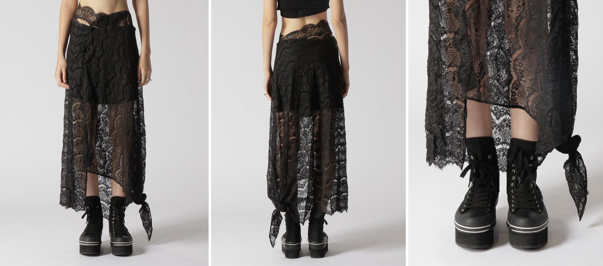 (右)BLOUSE 68,200 yen SKIRT 35,200 yen LACE SOCKS 28,600 yen
