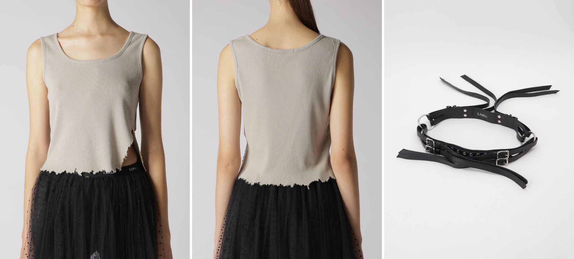 ダメージド・タンクトップ 24,200 yen(3月発売) ベルト 63,800 yen(3月発売)