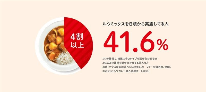 ※ハウス食品(株)調べ(2024年11月 20-79歳男女、全国、直近6ヶ月ルウカレー購入調理者 6000s Web調査)