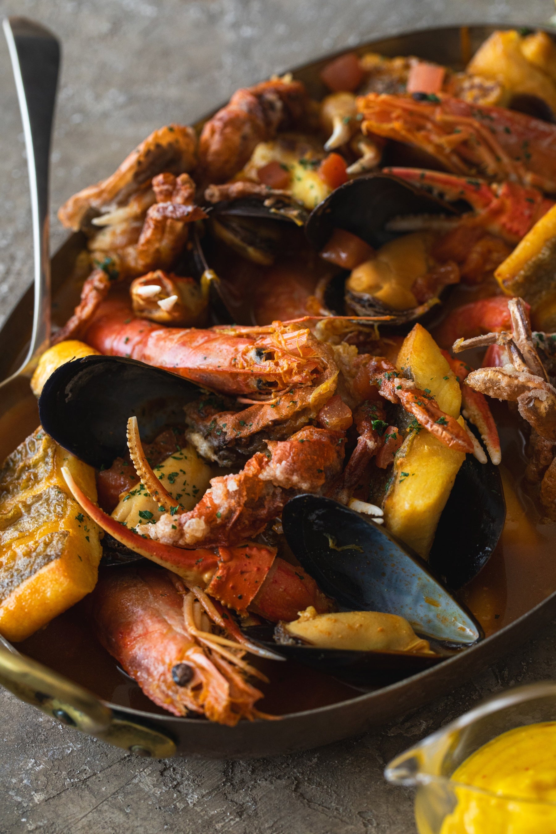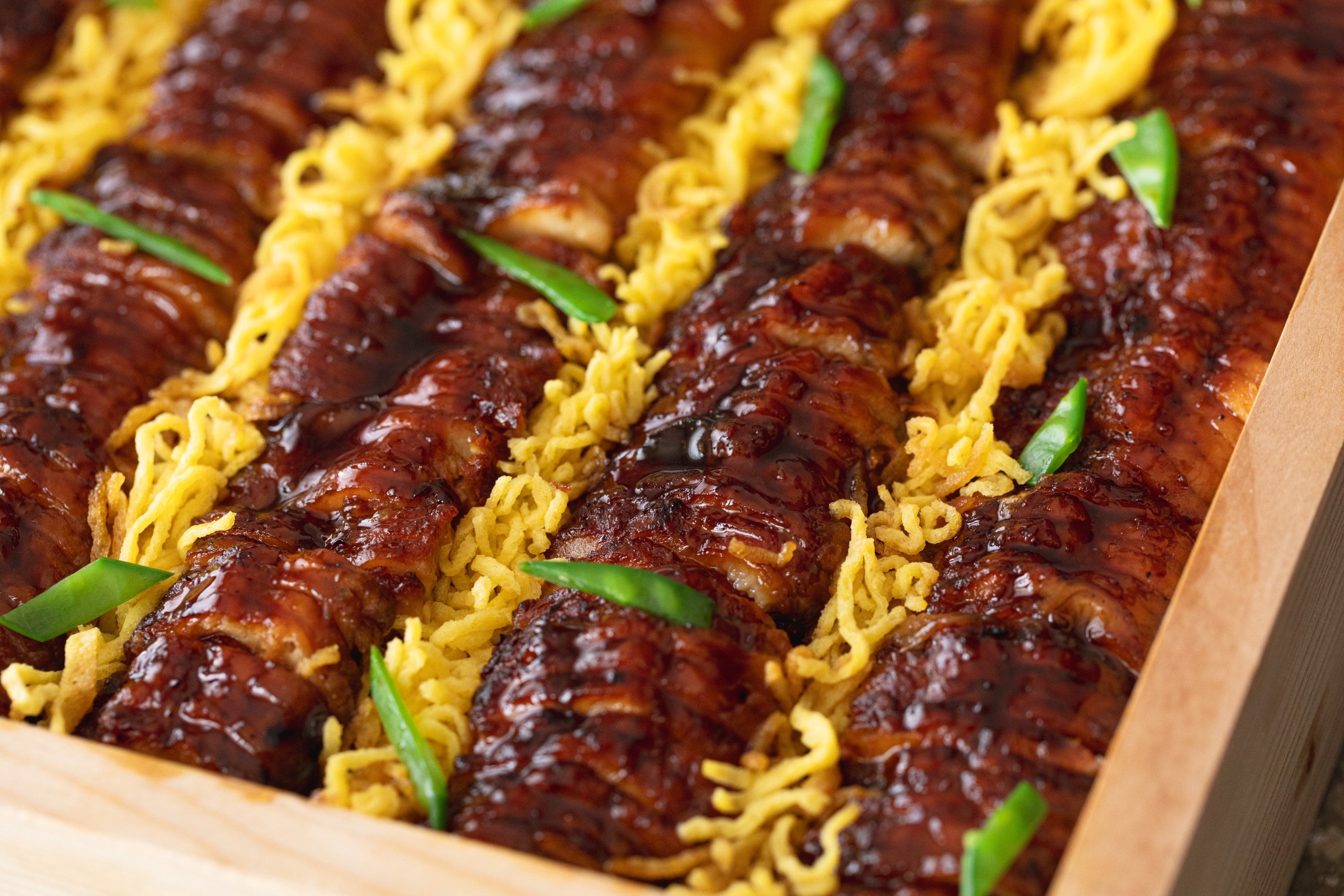 ディナーは、土地の美味を味わい尽くしていただけます。ギリシャで買い付けた壺を火鉢として使用し焼き上げた「焼き河豚」や、ここでしか味わえない峯野牛のスペイン風鉄板焼「カルネ・ア・ラ・プランチャ」は、ぜひとも味わっていただきたい一品です。また、不動の名物「うなぎご飯」や海の恵みを堪能する寿司、具沢山のブイヤベースや浜名湖産青海苔のソースで仕上げたスズキのオーブン焼きなど、遠州と地中海が融合したホットディッシュが揃います。