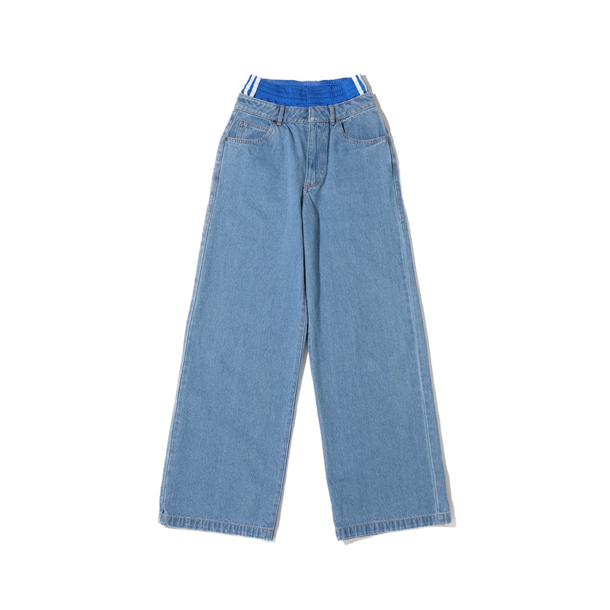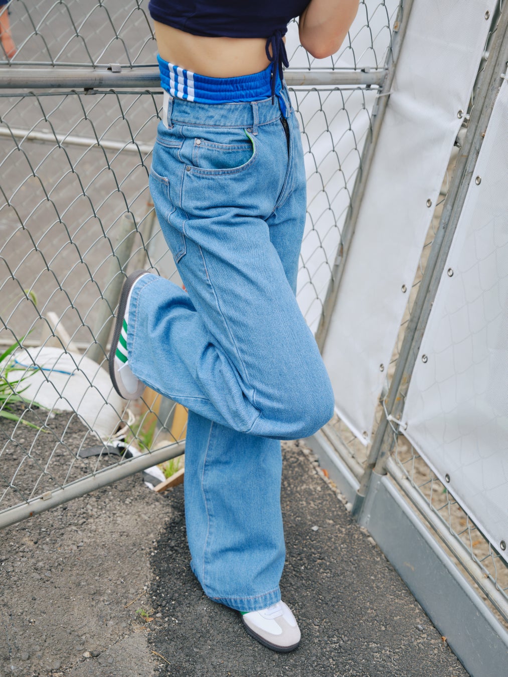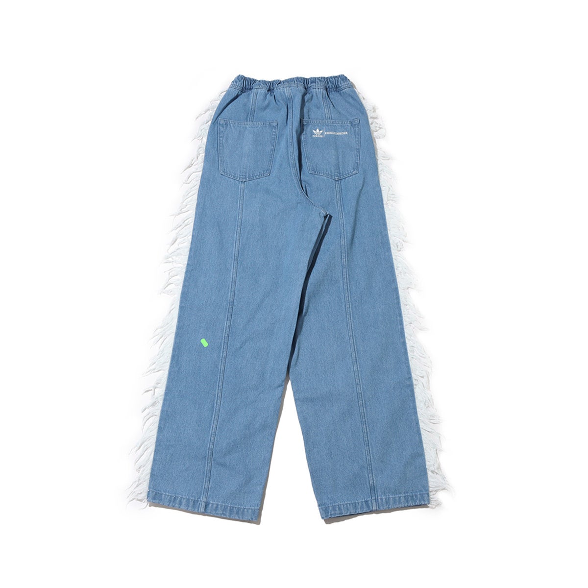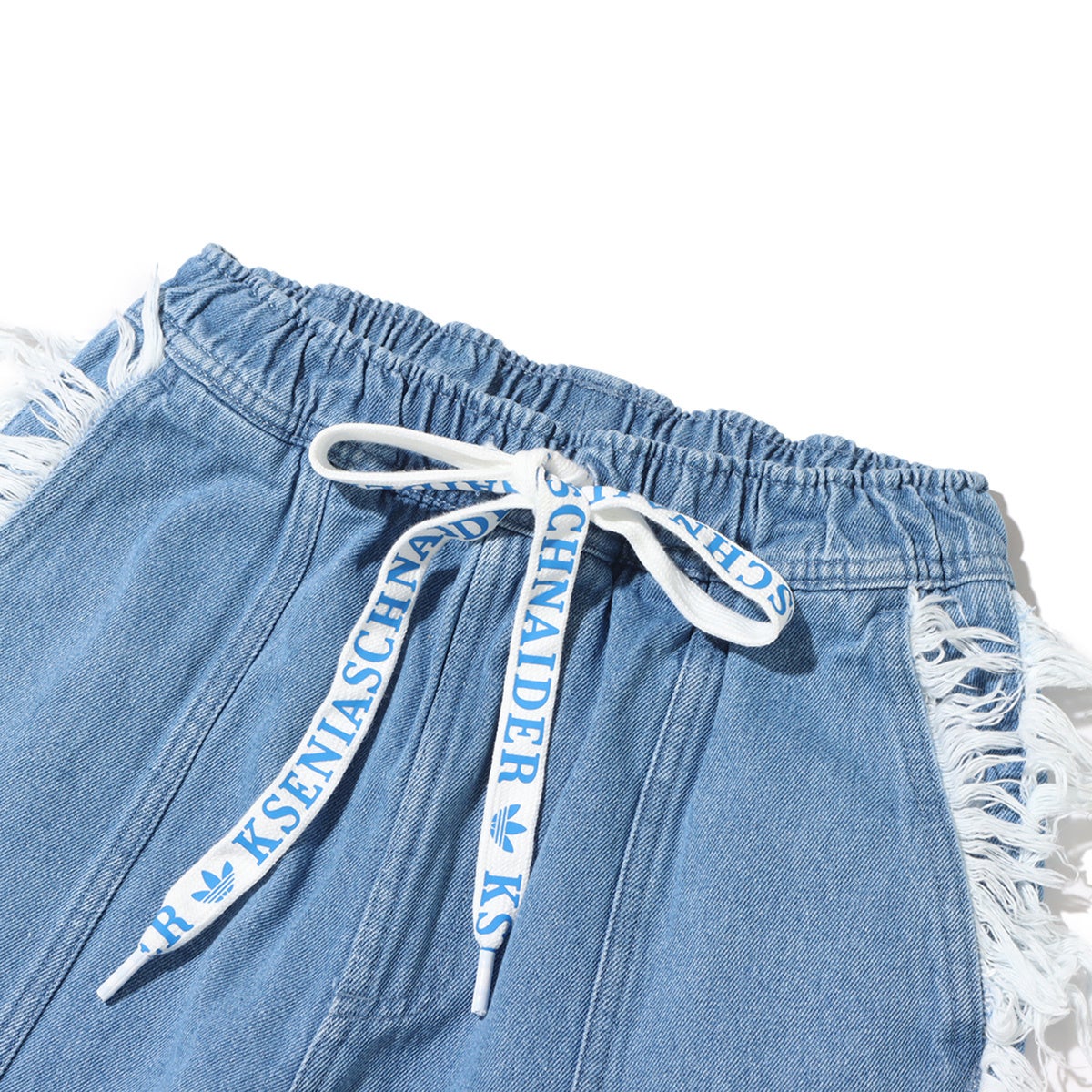 同じくフリンジのディテールで KSENIASCHNAIDER のスタイルと adidas Originals をデザインに落とし込んだ DENIM FRAY JEAN は、 本コレクションのロゴを配したドローコードがポイントです。シンプルなトップスを合わせるだけでキマる存在感抜群のデザインです。