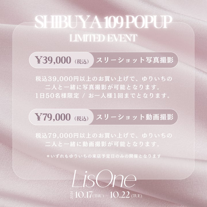 SNS総フォロワー数200万人を超える大人気カップルYouTuber「ゆりいちちゃんねる」のゆりながディレクターを務めるブランドの「LisOne」が初のPOPUPイベントをSHIBUYA109渋谷店にて開催することが決定。