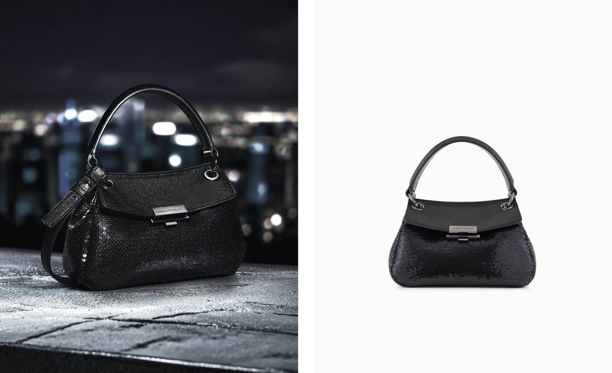 全面に施されたスパンコールがひと際華やかなミニショルダーバッグ。ストラップを外してミニハンドバッグとしてもご使用頂けます。コンパクトながら、身の周りのマストアイテムを収納できるので、パーティーシーンはもちろん、デイリーなスタイルのアクセントとしてもおすすめです。