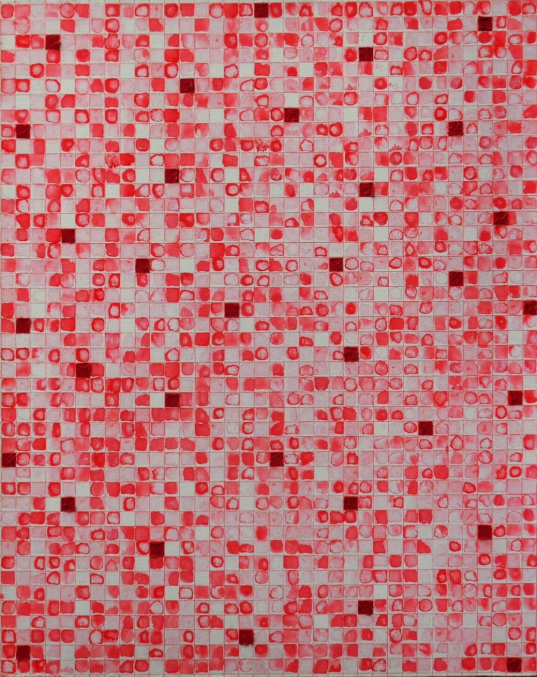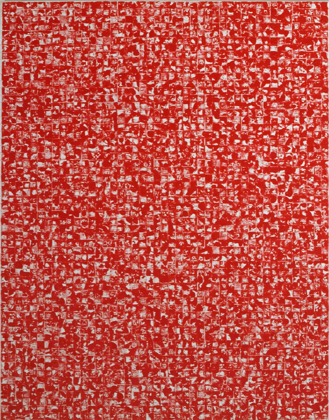 本シリーズは単色で構成されていますが、その中には複数の光のイメージが込められています。赤は洞窟の闇を照らす蝋燭の炎を、画面に残された余白は朝方に差し込む陽の光を象徴し、こうした異なる光が画面上で繰り返されることで、「光の集積」というイメージが立ち上がります。神園にとって光は、闇を照らす希望であり、本シリーズはその積み重なりを現代において可視化する試みです。