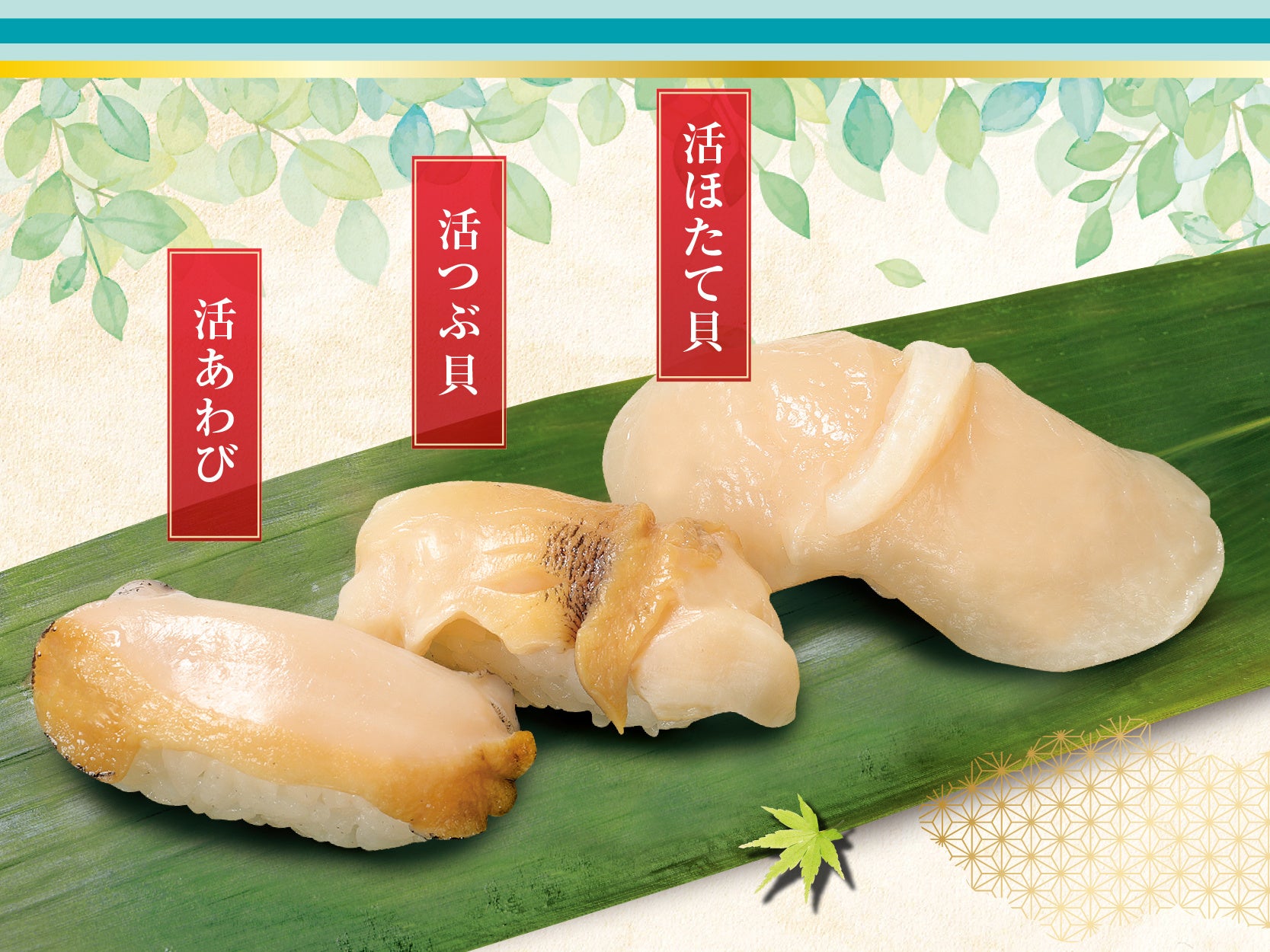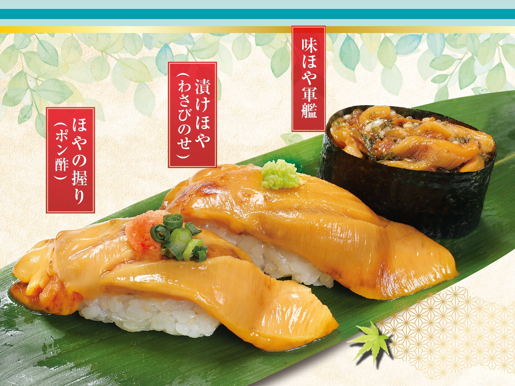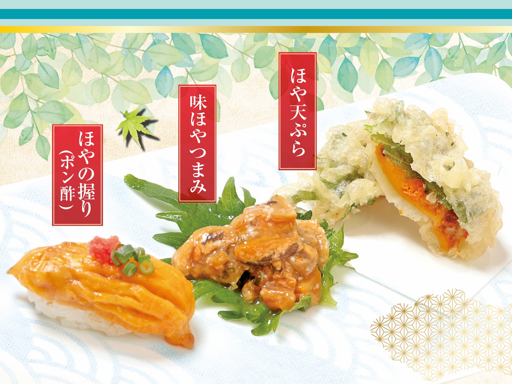 うまい鮨勘では、回転寿司店舗・ゆとろぎ店舗、東北対面寿司店舗それぞれの業態で、季節限定メニューを販売します。