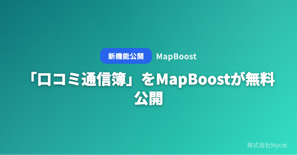 株式会社Mycat(本社:東京都目黒区)は、AI Google口コミ返信自動化ツール「MapBoost」(https://mapboost.space)において、口コミ通信簿(口コミスコアカード)(https://mapboost.space/tools/review-scorecard)を新たに無料公開しました。