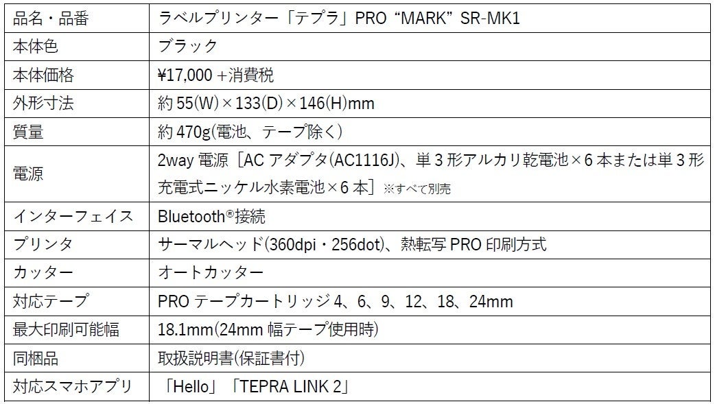 製品名・品番:ラベルプリンター「テプラ」PRO “MARK” SR-MK1