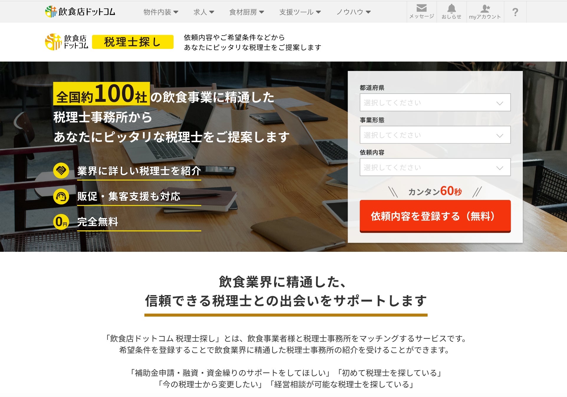飲食店と税理士事務所のマッチングサービス「飲食店ドットコム 税理士探し」を本日10月3日より本格開始