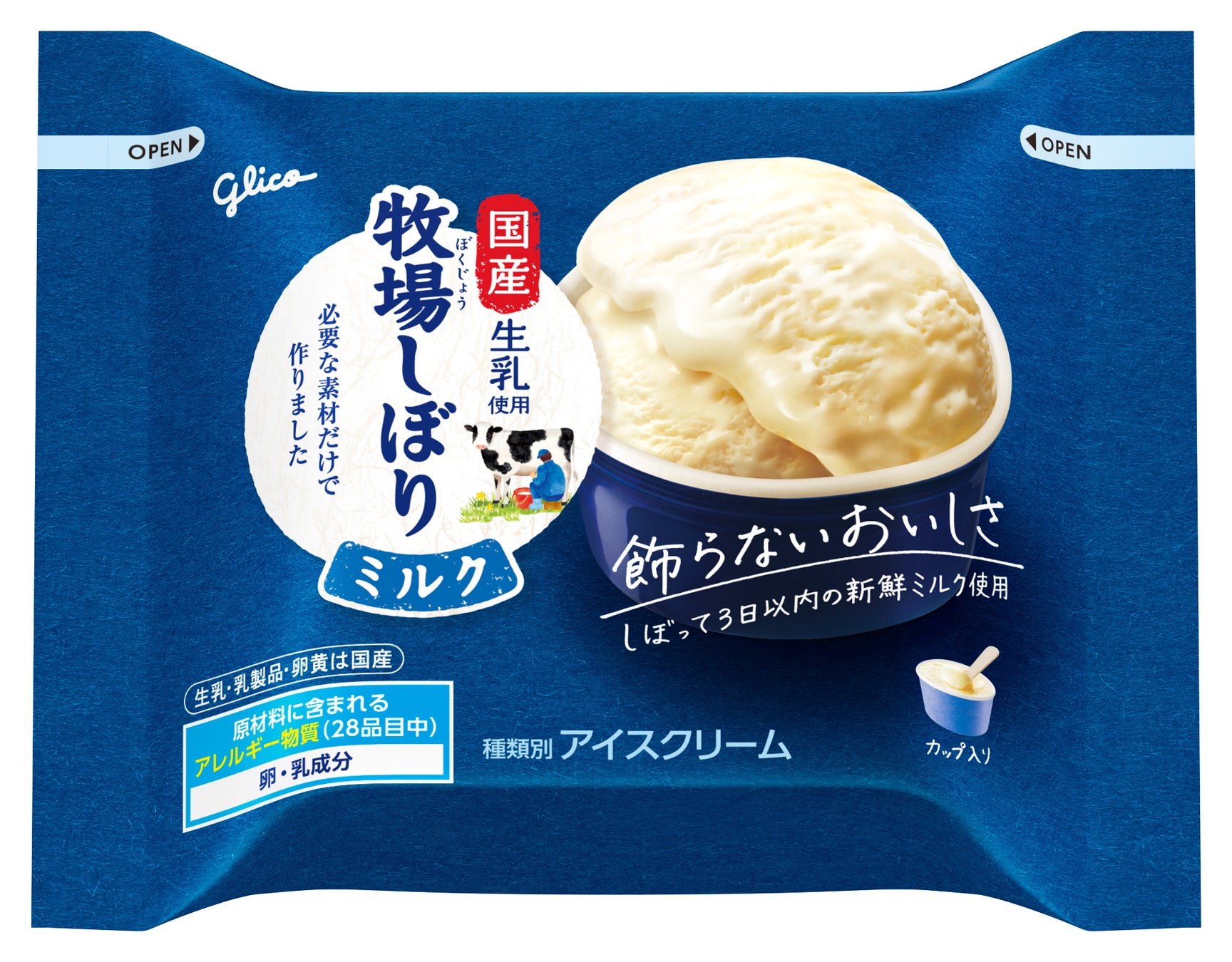 「牧場しぼり」は牧場で食べたアイスクリームのような、原料に近いおいしさを届けたいという思いから、2003年に発売され、20年以上ミルクにこだわり続けているブランドです。2016年からは、より新鮮なおいしさを届けるために、”しぼって3日以内“かつ”国産“の生ミルク(※1)の使用を開始しています。