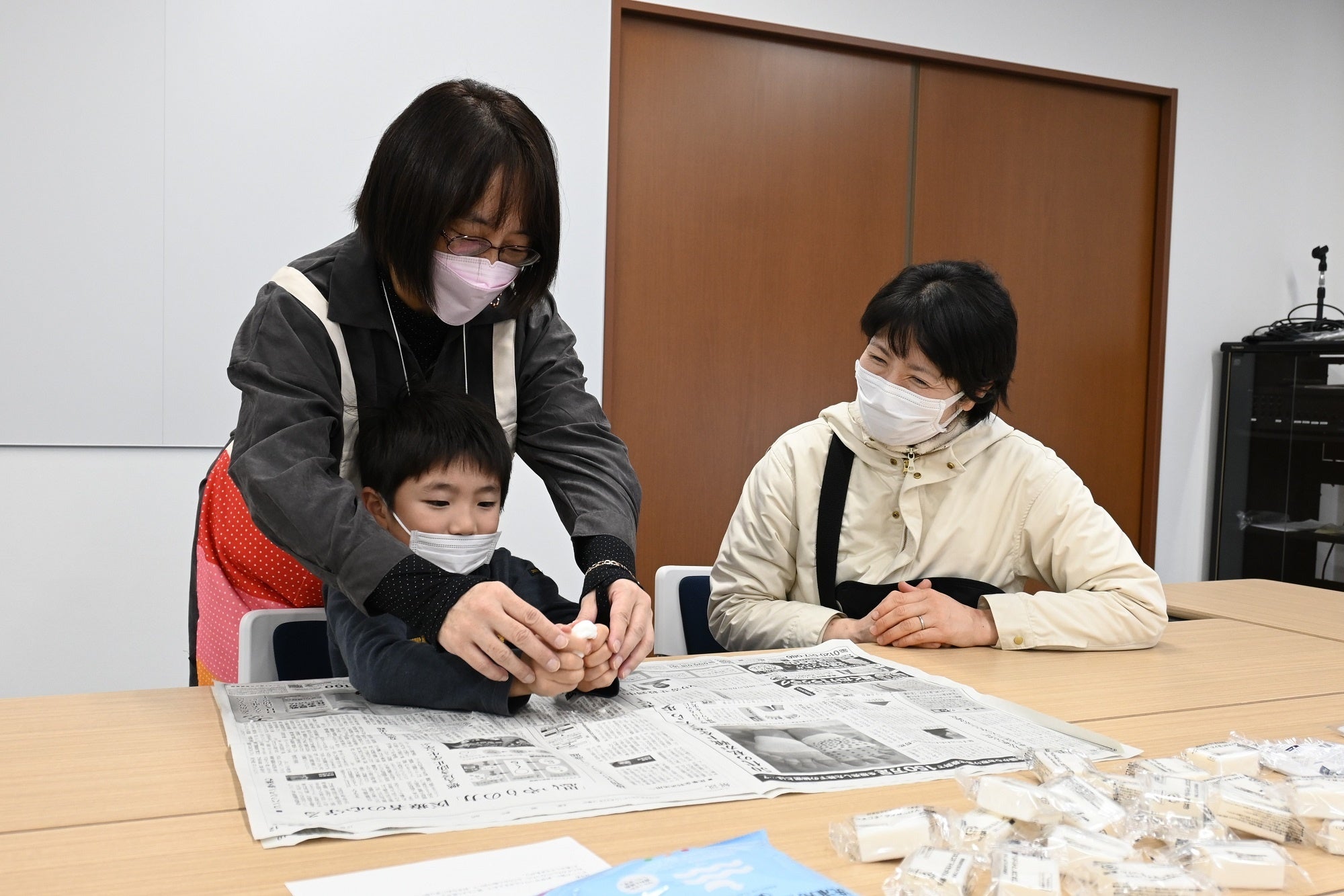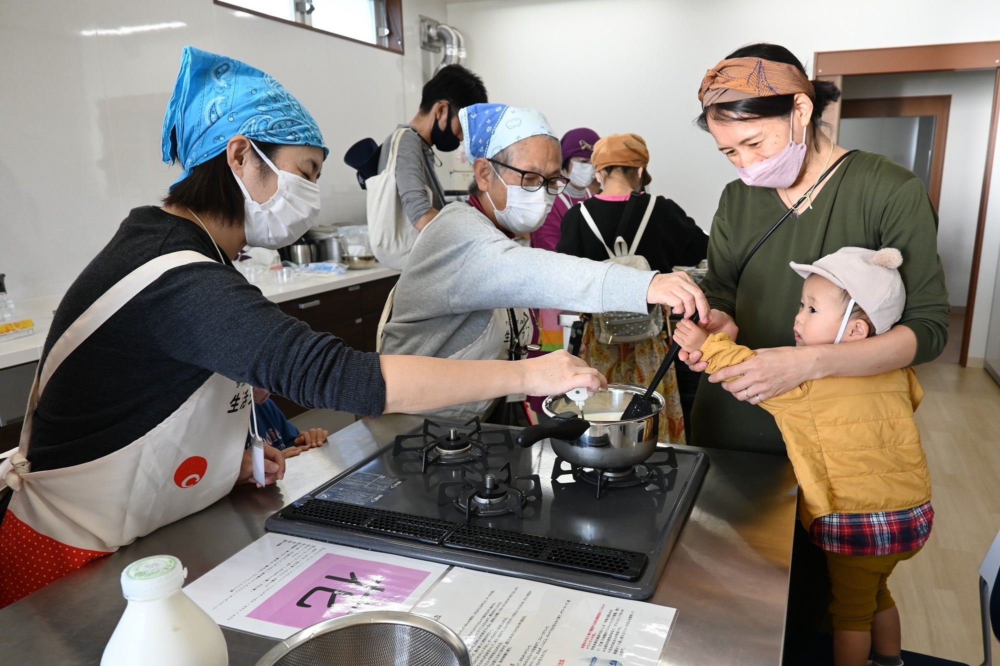 ノンホモジナイズド牛乳(通称ノンホモ牛乳)とお酢だけで完成するモッツァレラチーズづくりは、子どもから大人まで大人気でした。牛乳の温度をきちんと測れば、誰でも簡単にできるので、驚きの声が続々。