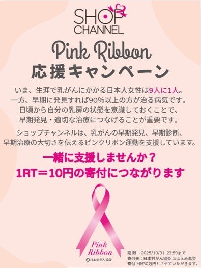 ショップチャンネル —10月はピンクリボン月間 今年はSNSで寄付が広がる参加型企画を実施—