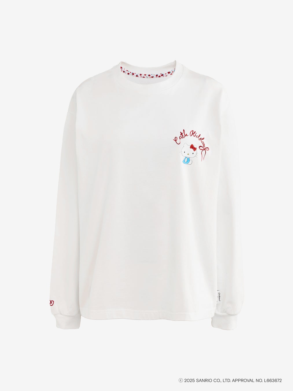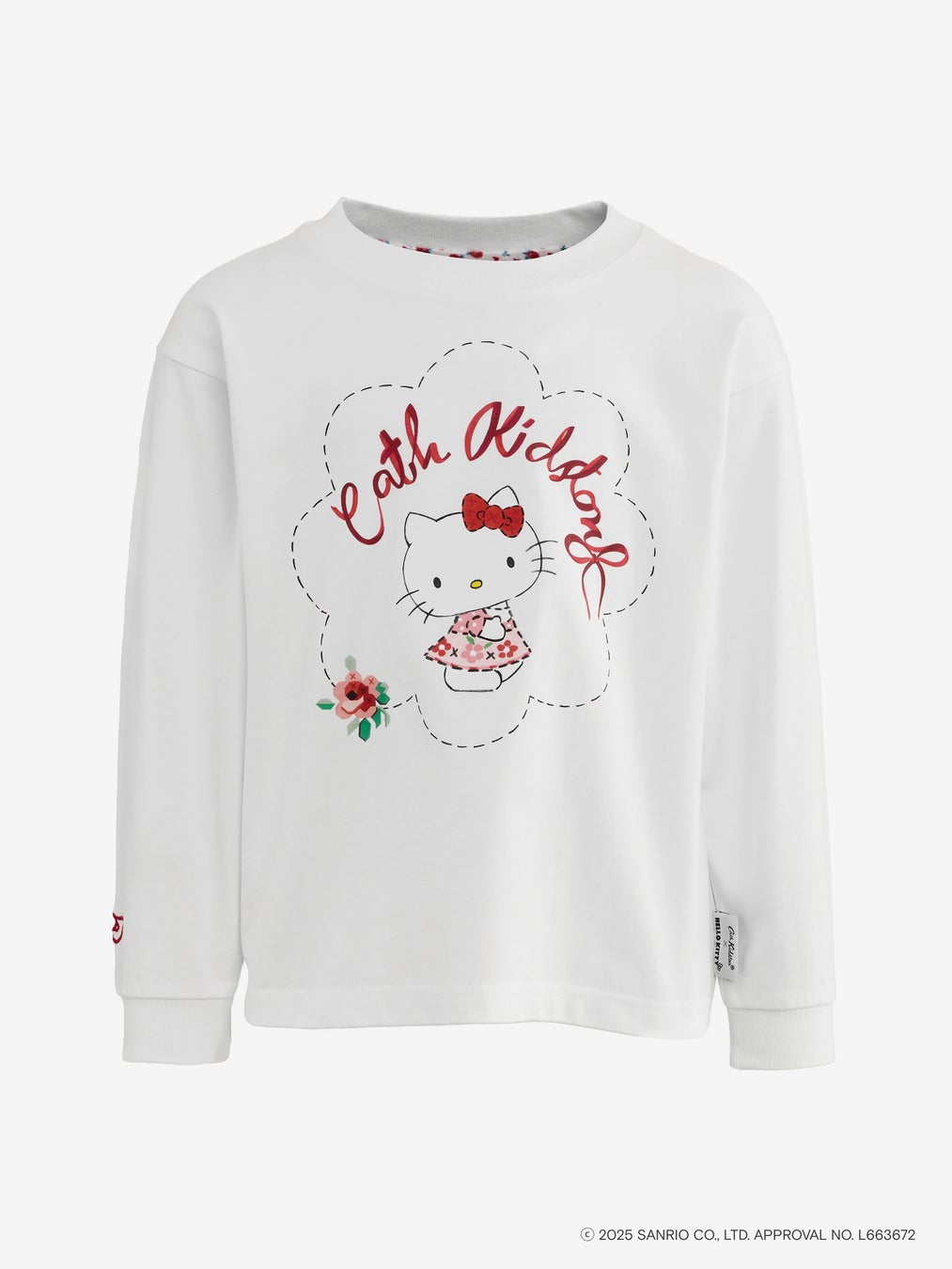 ◇Cath Kidston × Hello Kitty キッズロングスリーブシャツ ホワイト/ピンク 100/110/120/130 各7,700円(税込)