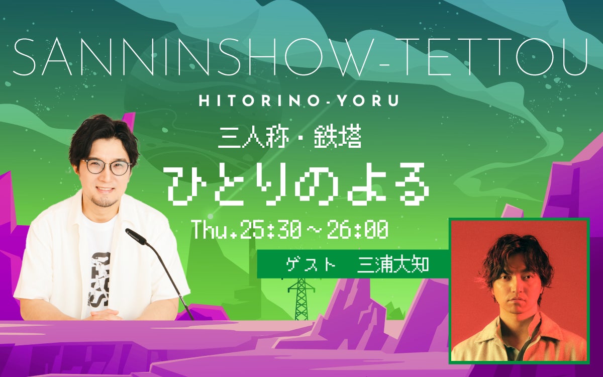大人気ゲーム実況グループ「三人称」のメンバーであり作家としても活躍する「鉄塔」が、深夜に“一人ぼっち”でお届けしている当番組。鉄塔にとって初のレギュラーラジオ番組で、今年10月には番組1周年を迎えました。