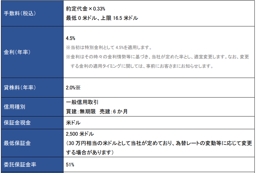 ■「米国株式信用取引」のサービス概要(インターネットコースの場合)