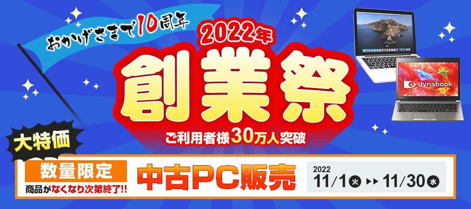 中古パソコン販売サイト「中古パソコンバルテック」にて、創業10周年を記念した「創業祭」キャンペーンを開催!日頃のご愛顧に感謝を込めて、数量限定・特別価格で販売します。