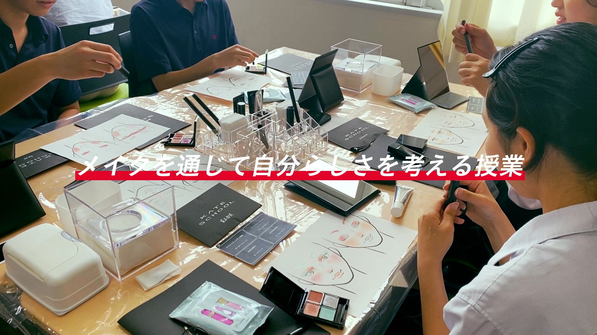 KATEは「自分らしさ」に悩む世代に向けて、メイクを通じて「自分らしさ」を知り、新たな自己表現の可能性を広げるきっかけづくりの場として、「KATE SCHOOL」を開講いたしました。「KATE SCHOOL」はメイクの仕方を学ぶ授業ではありません。メイクを自由に楽しんでいただくことで、新しい自分の一面に気づき、自分らしさを表現することの楽しさを感じてもらいたいと考えています。