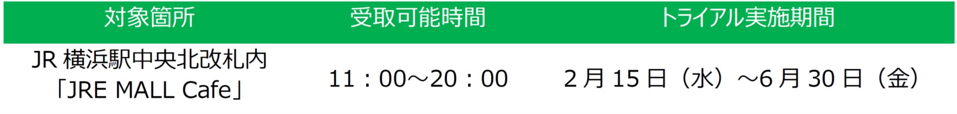 なお、今回は「JRE MALL Cafe」受け取りに関するお客さまのご利用意向調査を目的にトライアルとして実施します。