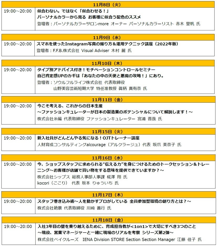 パーソナルカラーを活かした接客、接客体験価値の向上などアパレル業界で働くうえで“今”必要なスキルを伝授。2022年11月8日(火)~18日(金)19時スタート、参加無料