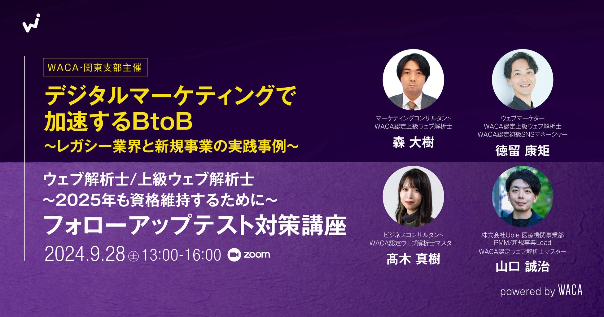 2024/9/28(土)13:00〜16:00 デジタルマーケティングで加速するBtoB〜 レガシー業界と新規事業の実践事例 〜&フォローアップテスト対策講座【WACA関東支部主催】