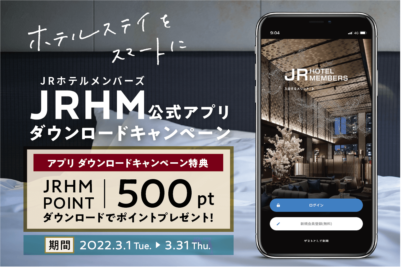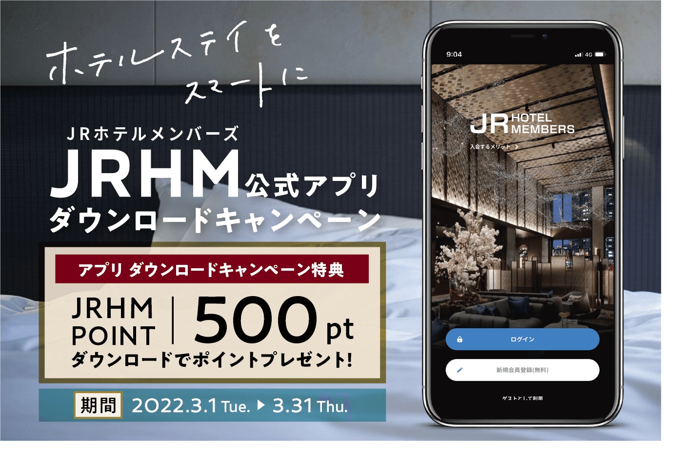 ホテルステイをスマートに!JRホテルメンバーズ 公式アプリ ダウンロードキャンペーンを実施。期間:2022年3月1日(火)~31日(木)