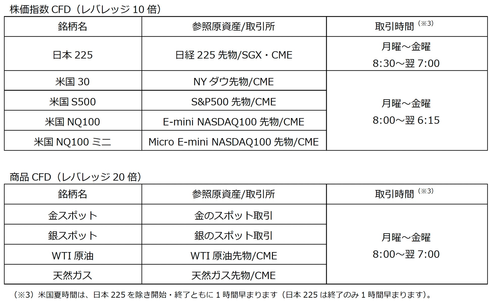 「CFD取引」は、FX取引と同様にレバレッジを効かせて証拠金の数倍の取引をすることができる差金決済取引です。「外貨ex CFD」では、日経225やNASDAQ100など世界の株価指数5銘柄と、金や原油などのコモディティ4銘柄を取引手数料無料でお取引いただけます。