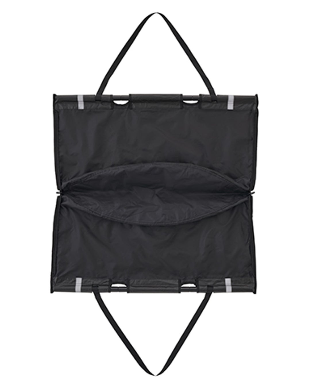 バッグの両側がジッパーになっており、ジッパーを開けばテントやチェアをはじめとする大きなアイテムや長尺のアイテムがまとめて持ち運べるので、駐車場からキャンプサイトまでの道のりなど、キャンプ用品の運搬時に活躍します。また、ジッパーを閉じた状態では底にマチがあるため、細かい荷物をたくさん入れて一度に持ち運ぶこともできます。
