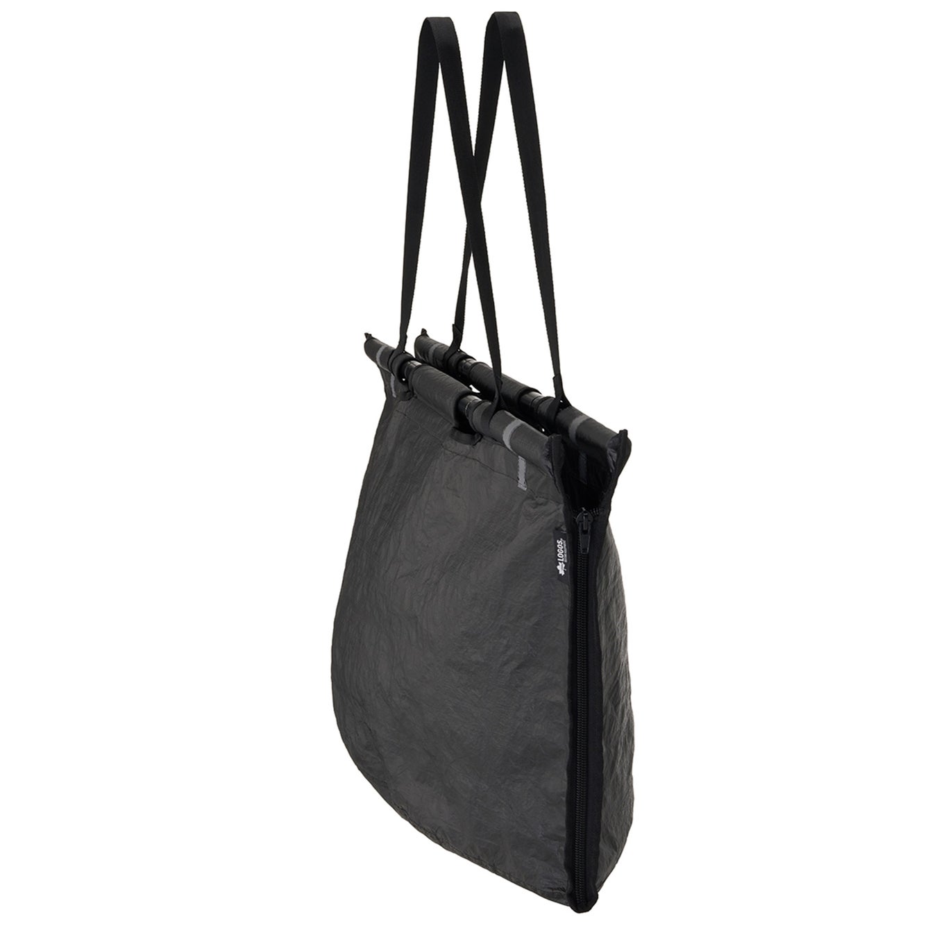 生地にはテントのグランドシートと同じ生地を採用しており、防水性にも優れる。ジッパーを開けて広げると防水シートになるので、荷物を濡らさずに置いておける。