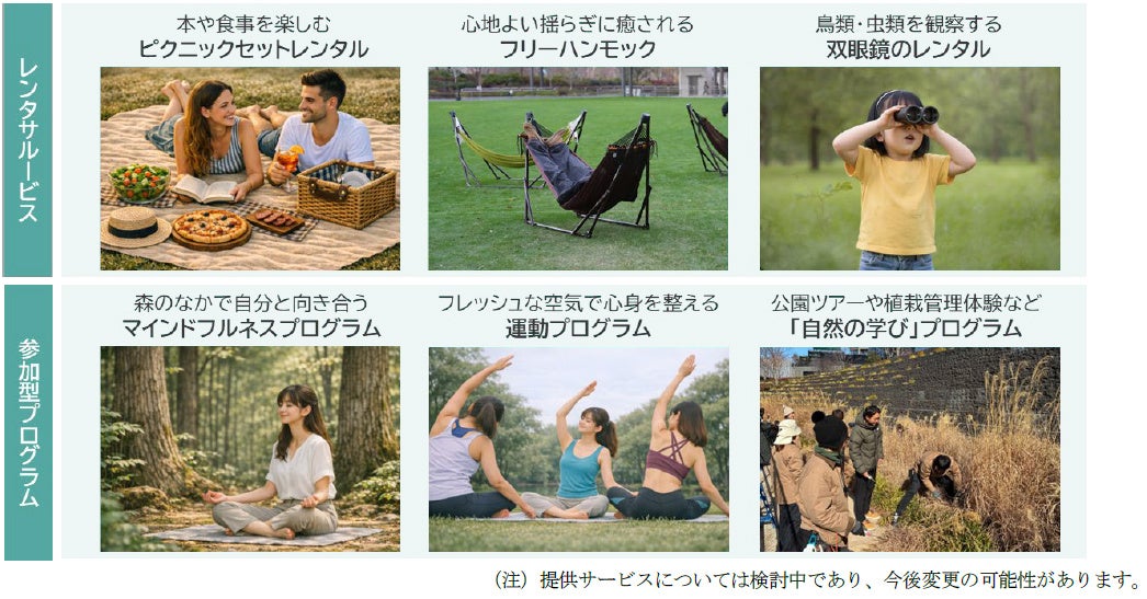 ・一般社団法人うめきたMMO※7が先行開業エリアで展開しているレンタルサービスや、参加型プログラム「うめきたPUBLIC SCOOP」※8を「うめきたの森」にも拡張することで、来街者は日常的にWell-beingを実践、あるいは、生物多様性を体感できます。また、これら活動への興味が深まり自ら主体的な取り組みを希望される市民・来街者を対象として、公園でのチャレンジ活動支援の仕組み「MIDORI CLUB」※9を開始します。