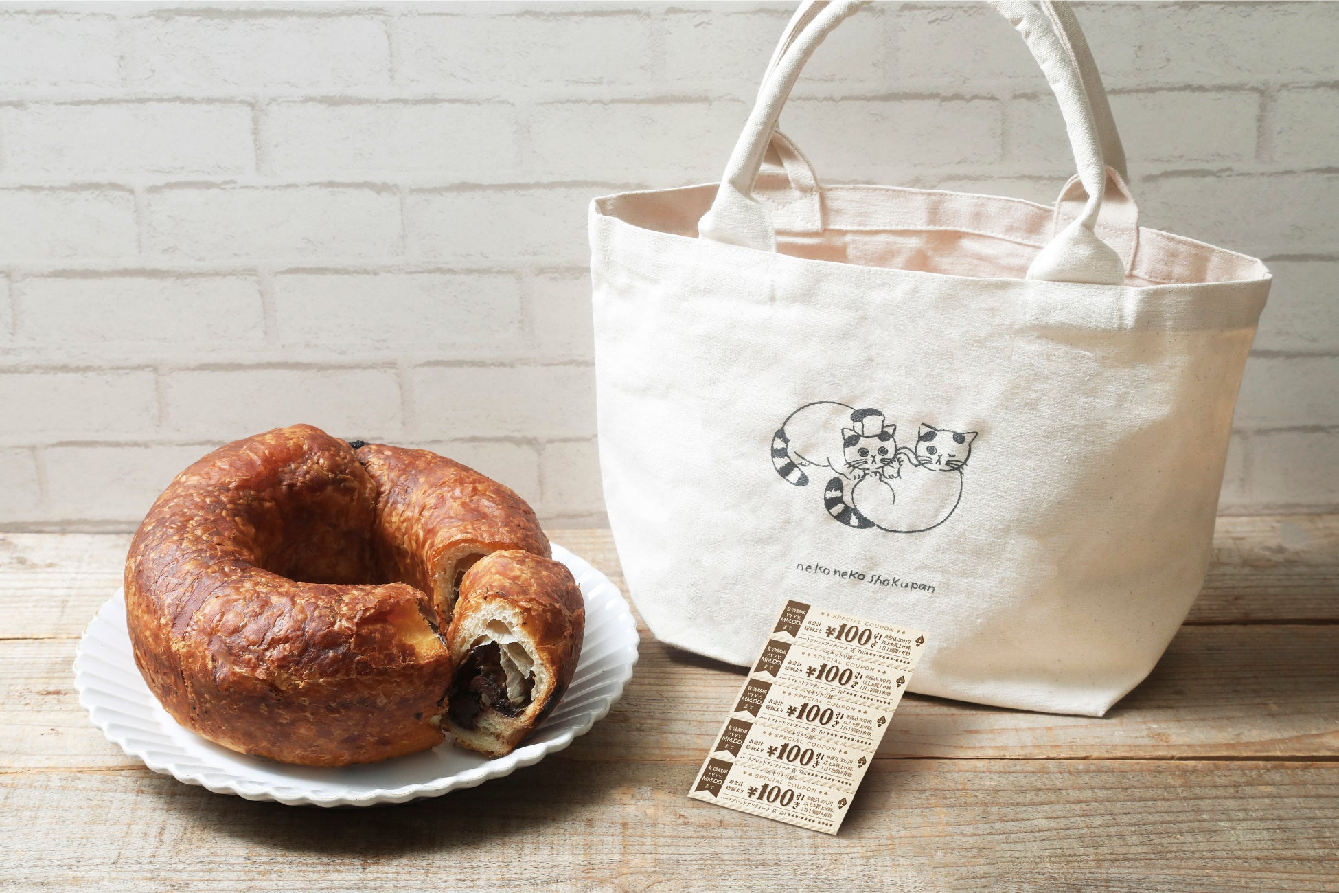 ・内容:「マジカルチョコリングMサイズ」1個、「ねこねこトートバッグ」1枚、500円分のパスポート1枚(100円引き×5回分)をセットにしました。ハートブレッドアンティークの看板商品や、ちょっとしたお出かけにもおすすめなトートバッグをはじめとした、3日間限定の豪華なセットです。