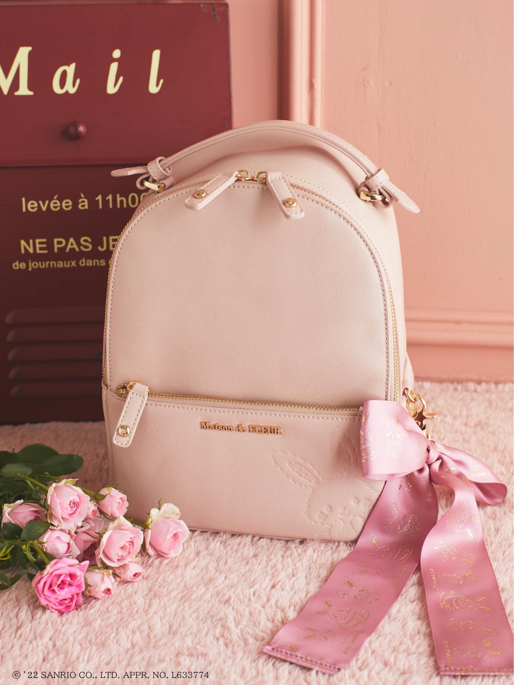 そのほか、ウィッシュミーメルをフロントに型押しした、フェイクレザーのリボンリュックもラインナップいたしました。