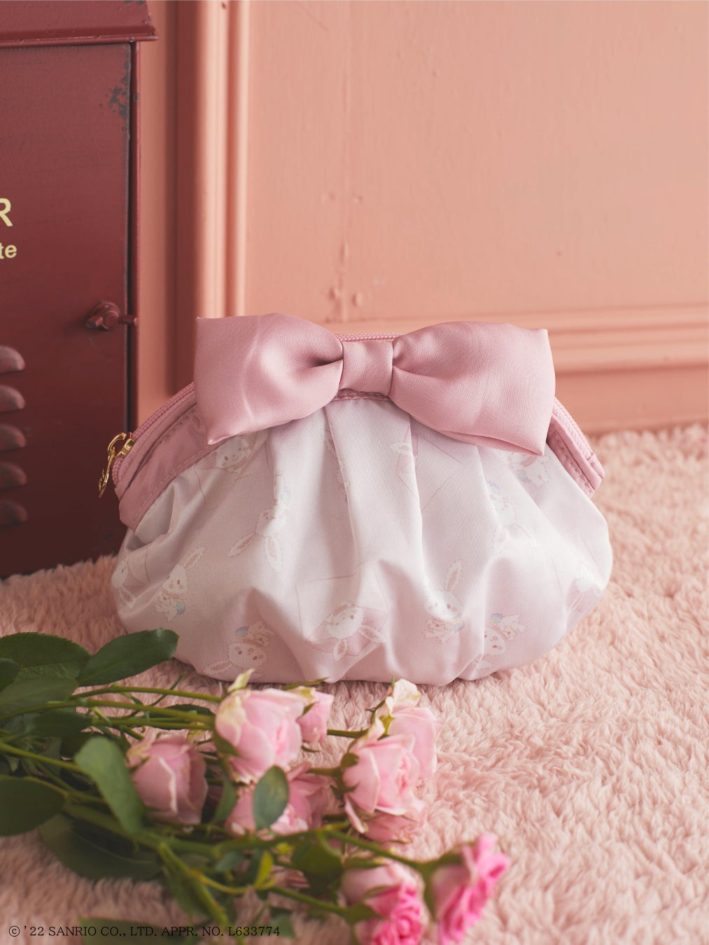 本コレクションはトートバッグやポーチの全4型。ブランド人気のフリルハンドルトートバッグは、ウィッシュミーメルが手紙を大事に抱えた様子や、封筒からひょっこり顔を覗かせた姿などを淡いピンク地に総柄プリントしました。プリントしたウィッシュミーメルは公式Twitterのイラストからピックアップしているので、どんなシーンでの姿かをぜひ探してみてください。また、同じプリント柄のリボンポーチもご用意いたしました。