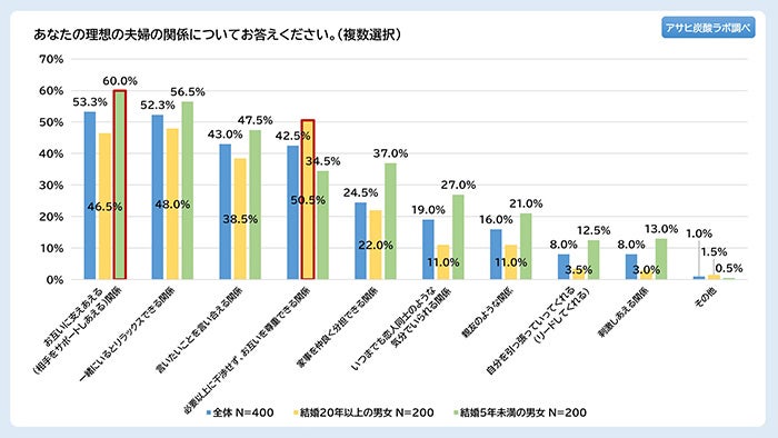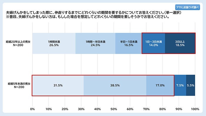 【アサヒ炭酸ラボ いい夫婦の日記念/結婚20年を境にどう変わる?夫婦関係の意識調査】結婚「20年以上の熟年夫婦」と「5年未満の新米夫婦」の夫婦関係を徹底調査!