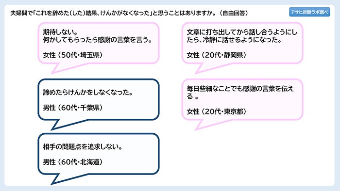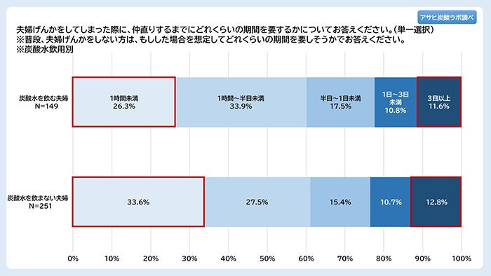 アサヒ炭酸ラボでは、強炭酸水のオフィスワーク時のリラックス度合い維持の効果が、日常生活にも活用できるのではないかという予想の下、「いい夫婦の日」をきっかけに結婚5年未満と20年以上の夫婦の意識の差を調べ、夫婦間のコミュニケーションにおける良好な関係維持に強炭酸水が役立つ可能性を探りました。